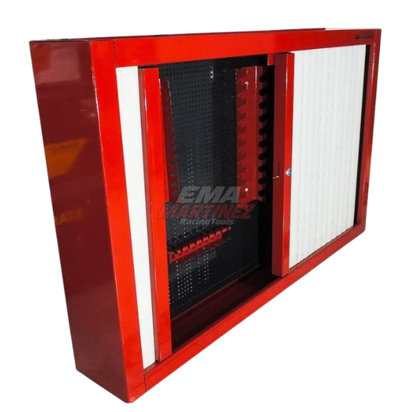 Su sistema de persiana corrediza permite un acceso rápido sin ocupar espacio adicional al abrir, ideal para ambientes de trabajo reducidos. Además, su diseño robusto protege las herramientas del polvo y el uso diario.