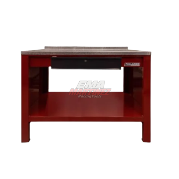 Su estructura metálica reforzada y mesada de chapa galvanizada permiten realizar tareas exigentes con seguridad. El cajón con cerradura brinda un espacio práctico para guardar herramientas de uso frecuente.