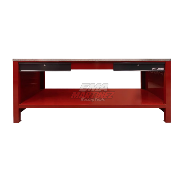 Fabricado con estructura metálica reforzada y mesada de chapa galvanizada, está diseñado para soportar tareas exigentes. Incorpora cajones con guías reforzadas y cerradura, brindando almacenamiento seguro para herramientas.