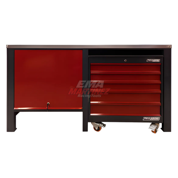 Su estructura robusta con mesada de chapa galvanizada permite realizar trabajos exigentes con total estabilidad. Incorpora un compartimiento con puerta para almacenamiento y una mesa porta-herramientas móvil, ideal para trabajar con mayor comodidad y trasladar herramientas según la necesidad.