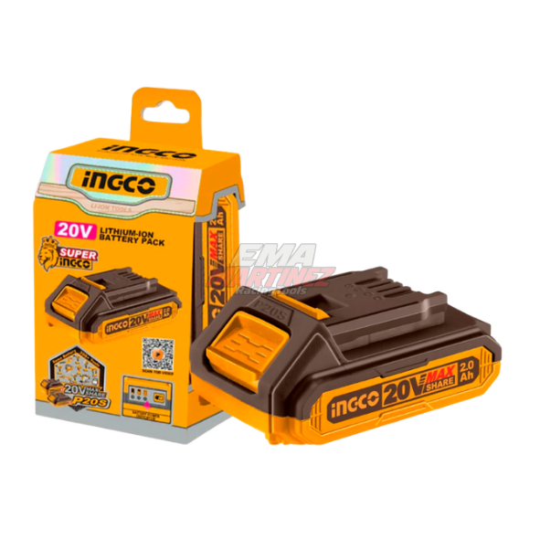 La Batería Ingco FBLI20011 de 20V y 2.0 Ah está diseñada para alimentar herramientas inalámbricas de la línea P20S, ofreciendo energía confiable y autonomía para trabajos profesionales y de mantenimiento.
